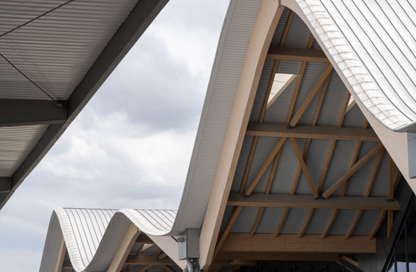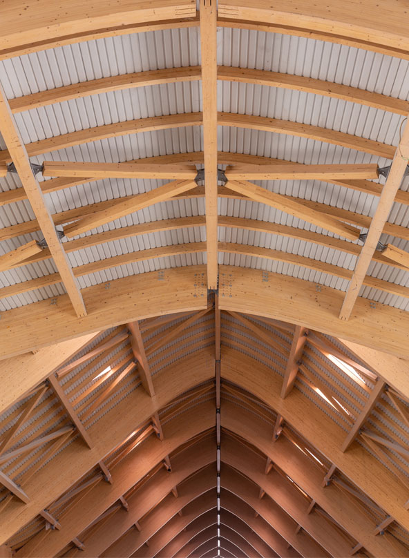 Within, the sculptural glulam framework rises with grace and rhythm. Its form recalls the geometry of the parol, the Filipino lantern of light and hope—translated into structural expression. Crafted through engineered timber, this gesture brings cultural identity to infrastructure, evoking both heritage and forward movement.