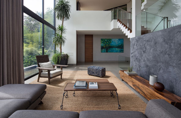 This home unfolds as an orchestration of light, space, and nature. Walls guide openness, extending views across living areas, while glass dissolves boundaries to let greenery complete the composition.